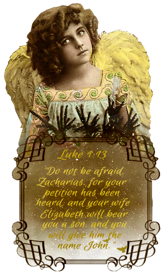 | "Do not be afraid Zacharias, for your petition has been heard, and your wife Elizabeth will bear you a son, and you will give him the name John." Luke 1:13 |